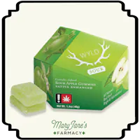 Wyld's bright and adventurous Sour Green Apple Sativa Enhanced gummies are made with real fruit and enhanced with botanical terpenes that assist in creating both euphoric and energizing experiences, with a tart, punchy twist! Looking to brighten your mood? It's a little like sparklers on a summer night. 10 gummies per package, 10mg THC per gummy Terpenes: Limonene, Valencene, Beta Caryophyllene, Alpha Pinene, Beta Pinene